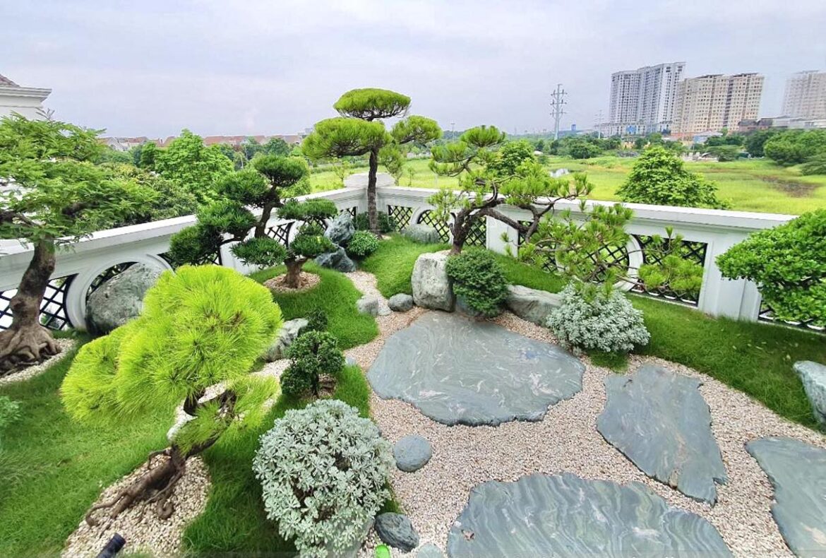 Công đoạn trồng cây và bố trí đá cảnh là phần quan trọng nhất. Các loại cây cảnh được chọn lọc kỹ lưỡng từ vườn ươm, đảm bảo chất lượng và sức sống tốt. Những phiến đá tự nhiên được sắp xếp theo thiết kế, tạo nên một không gian hài hòa và tự nhiên.